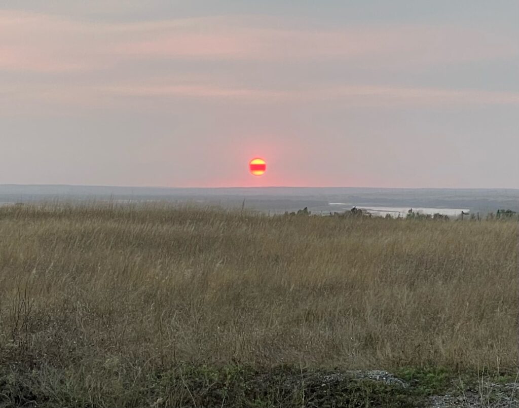 Reflecting back, it was fitting that our first activity in North Dakota was a stop near the New Rockford / Sheyenne area, as this area is part of Doug’s origin story. Doug’s grandmother, Nellie Moe (born 1897) was married to his Pennsylvania-born grandfather, Harold, at Nellie’s family farm just 7 miles south of Sheyenne, North Dakota in 1917. Their 6 children – Ovie, Ione, Buddy, Lowell, Dale, and Doris (Doug’s mother – the youngest of 6) were all born in and around this area. Doug’s mom was only about 3 years old when her family moved to Portland in 1941, following some of her siblings there.