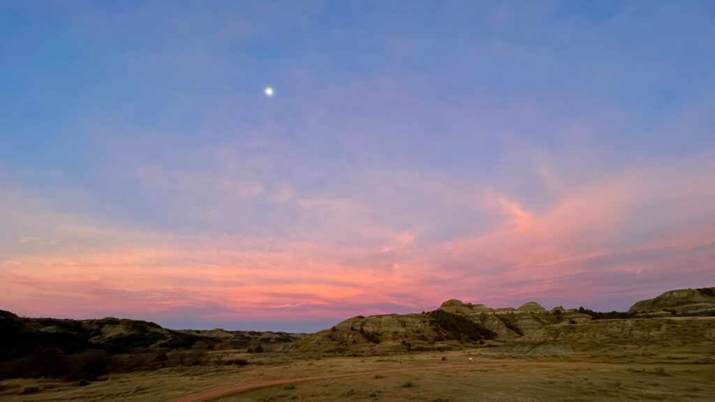 From the Bennet Campground, there are several pretty sunset hikes and there’s an access road from the campground to the multi-use Maah Daah Hey Trail. This 144-mile trail traverses both the North and South Units of Theodore Roosevelt Park as well as the Little Missouri National Grasslands. Doug took an epic, 18-mile, mountain bike ride along this trail.
